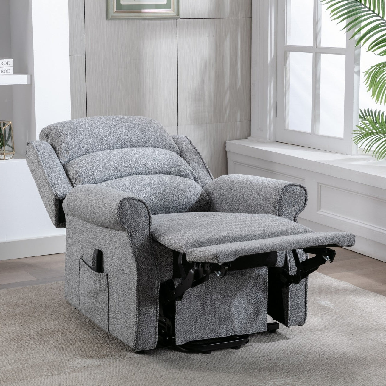 The Andover Electric Riser Recliner is the perfect seating solution for anyone who requires assistance getting out of their armchair or sofa. At the touch of a button, the user can effortlessly adjust both the footrest and the back support independently of each other until the optimum seating position is reached. When it’s time to get up, the smooth riser mechanism enables the chair to be gently tilted forward. Available in the two lovely Grey and Linen fabrics.