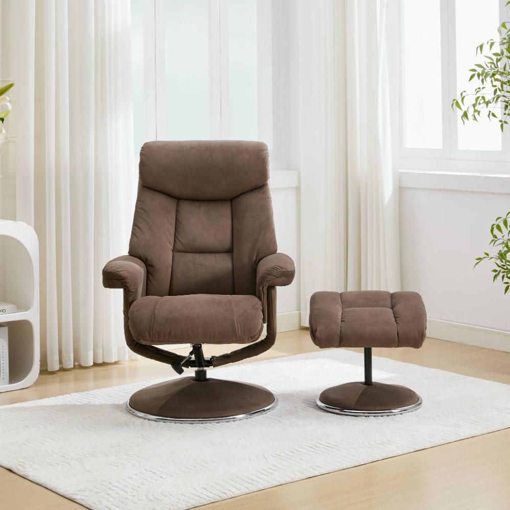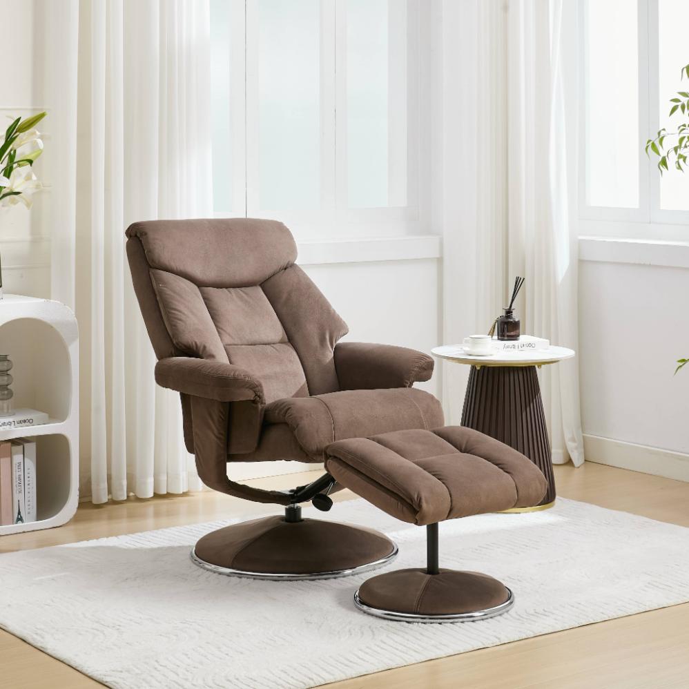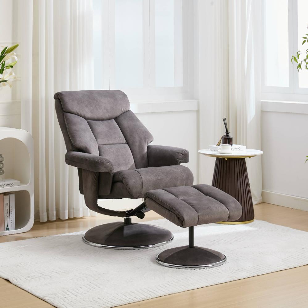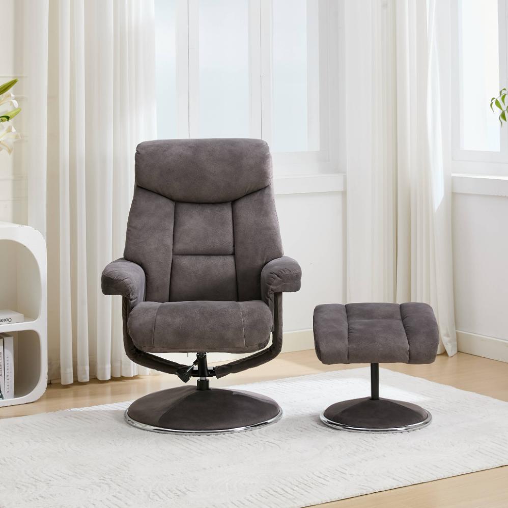 The Biarritz is a sleek, luxurious swivel recliner in gorgeous soft and strong fabric. Also available in Plush PU, a lovely, strong and thicker material that is a great substitute for real leather, showing an elegant grain finish, but at half the price!