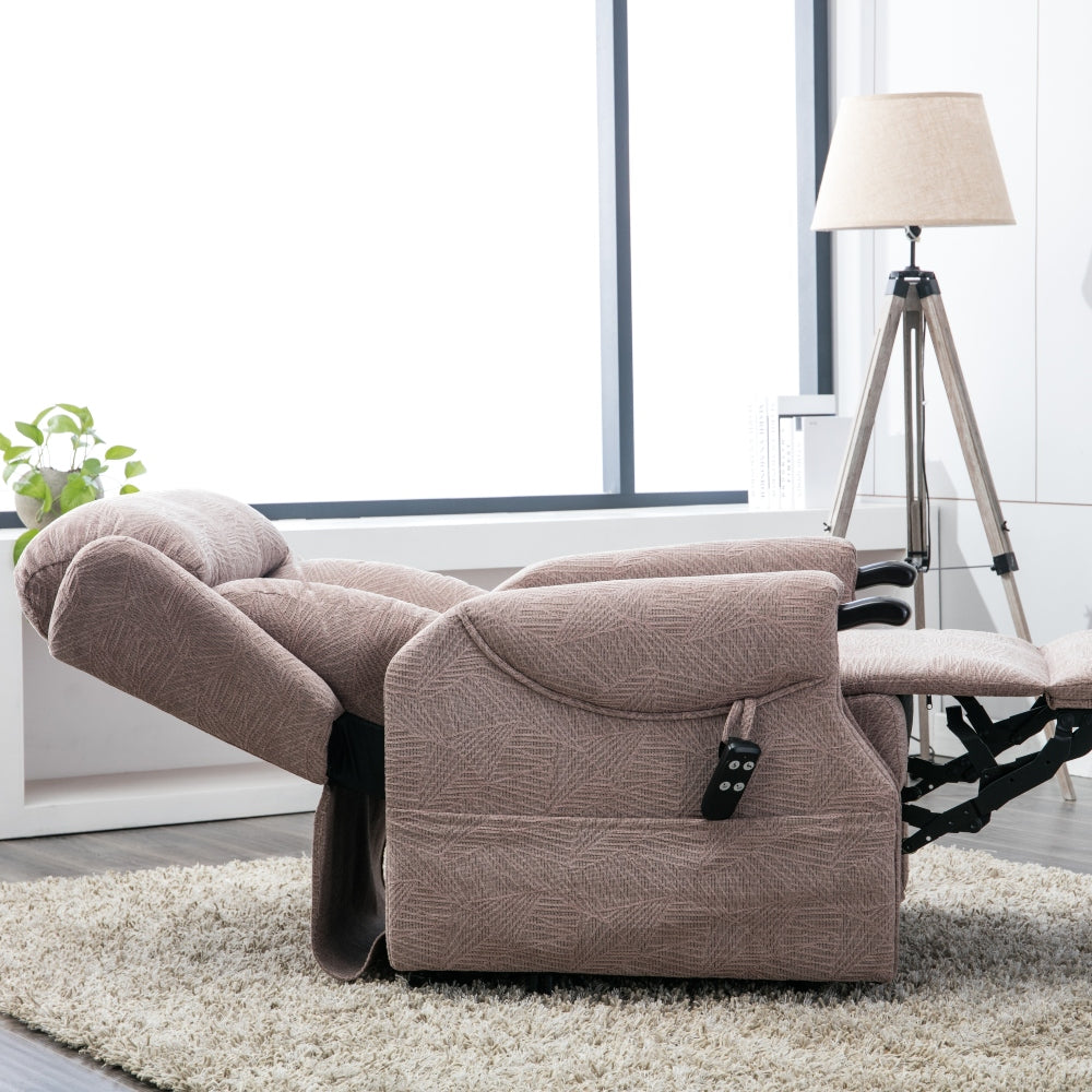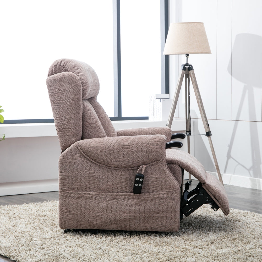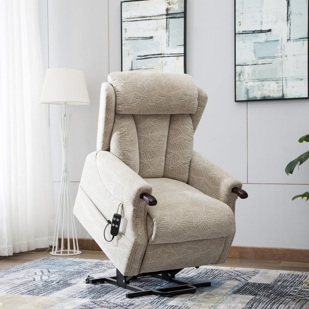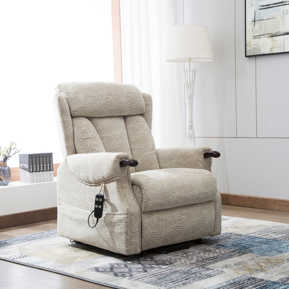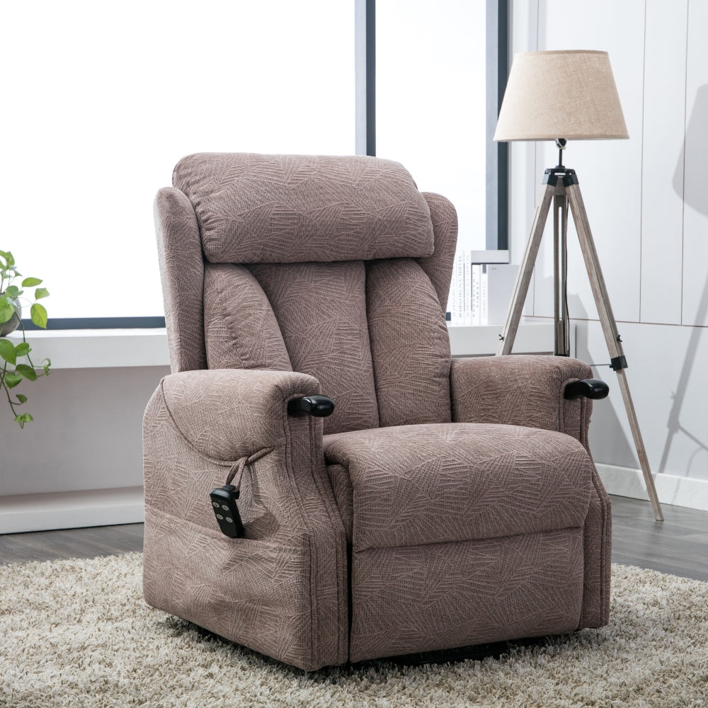 The Denmark is a sumptuous fabric riser recliner, offering complete adjustability at the touch of a button.