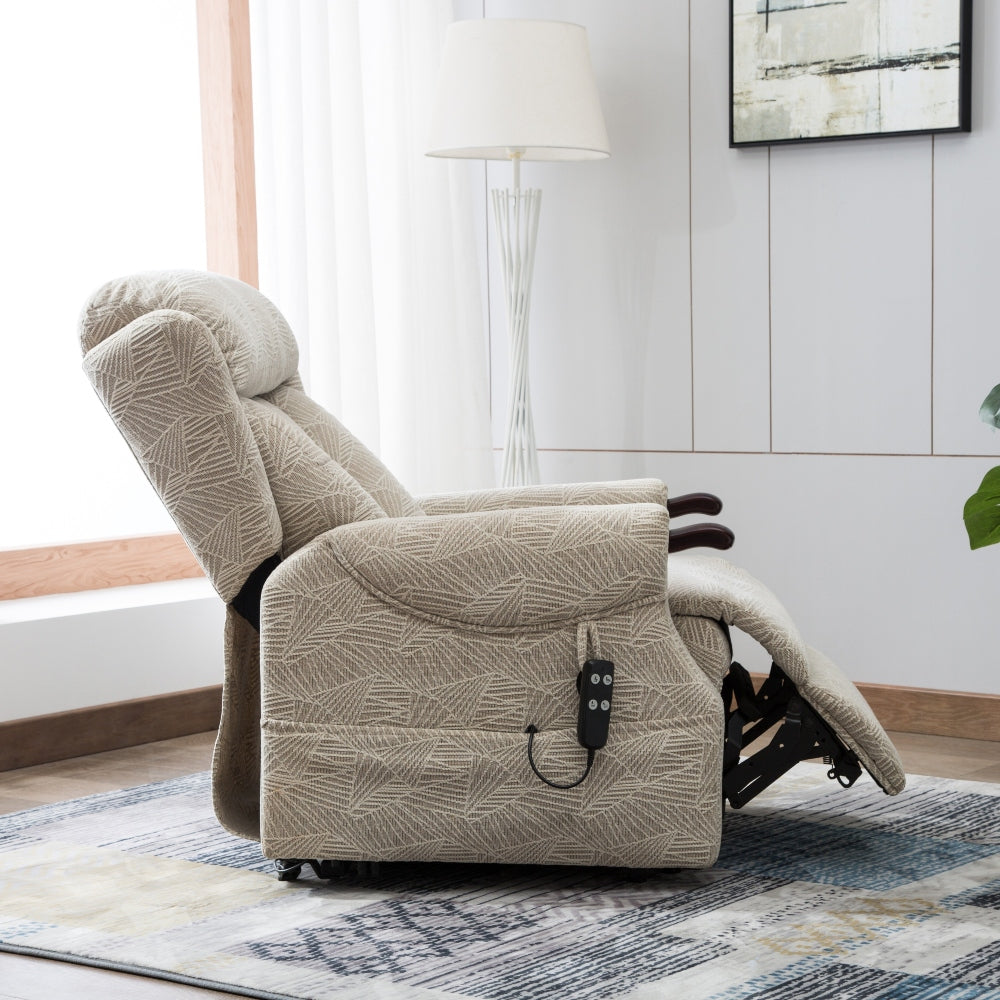 The Denmark Electric Riser Recliner is the perfect seating solution for anyone who requires assistance getting out of their armchair or sofa. At the touch of a button, the user can effortlessly adjust both the foot rest and the back support independently of each other until the optimum seating position is reached. When it’s time to get up, the smooth riser mechanism enables the chair to be gently tilted forward. In two lovely "Brushstroke" fabrics - Mocha and Cream