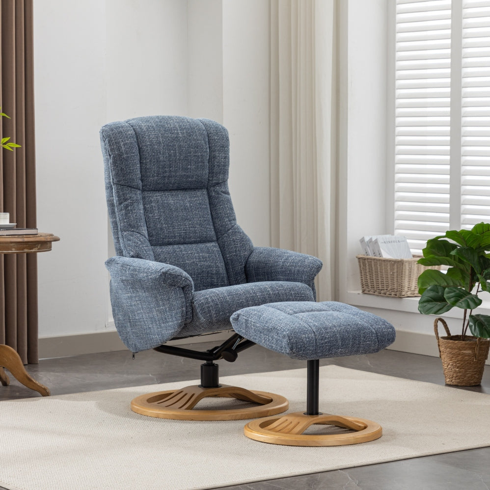 With its substantial width and high back, the Mandalay is perfect for use by people of all heights and sizes. It offers excellent lumbar support, whilst the sloping footstool not only supports the legs but also takes pressure off the back. The Mandalay not only reclines but also swivels through 360 degrees, providing full flexibility of movement.