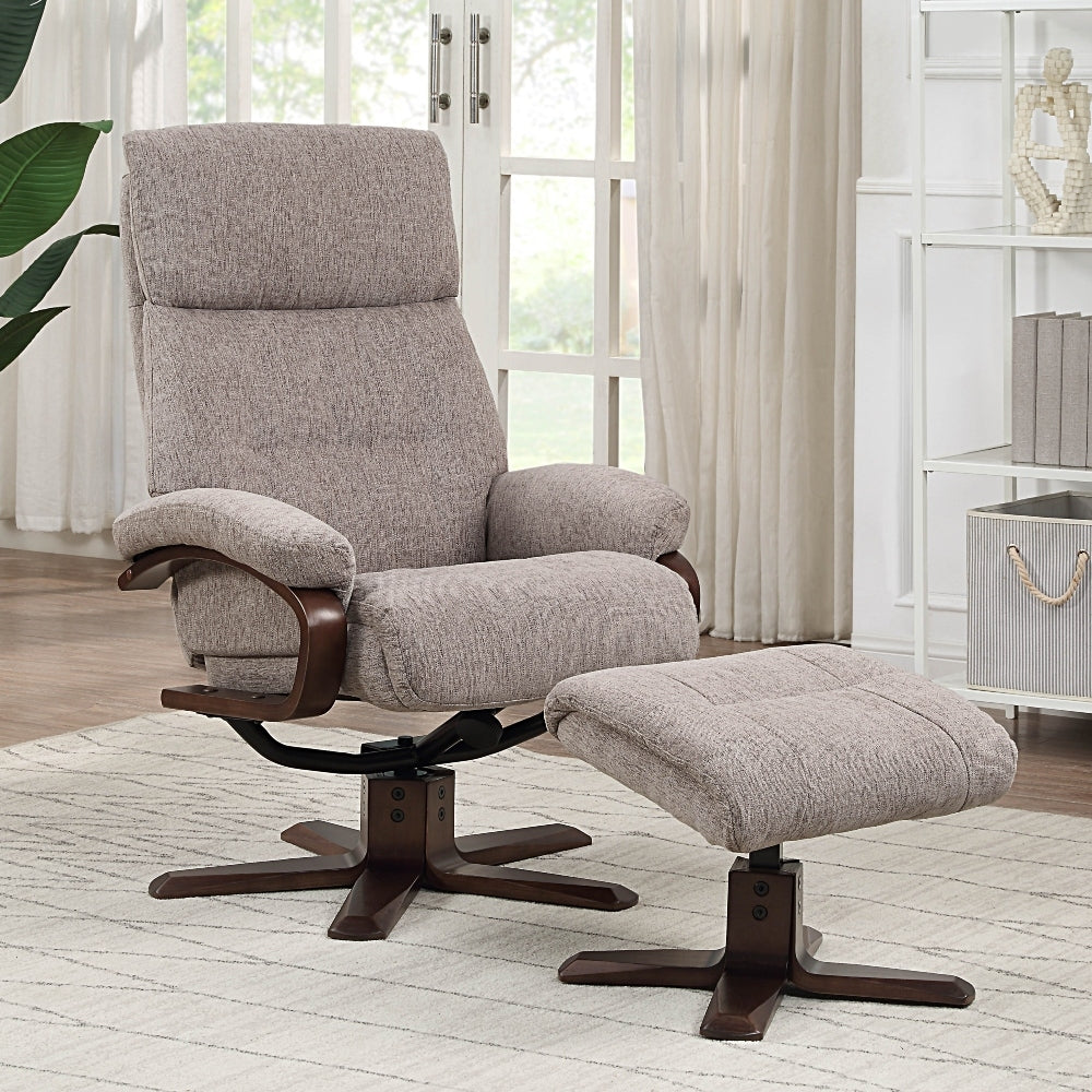 The Vienna Swivel Recliner & Footstool is a true standout piece, that is sure to add a touch of elegance and sophistication to any room. This Swivel Recliner & Footstool is available in a range of versatile fabrics and leathers, to match any décor.